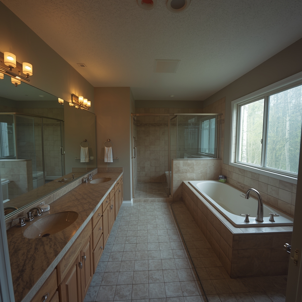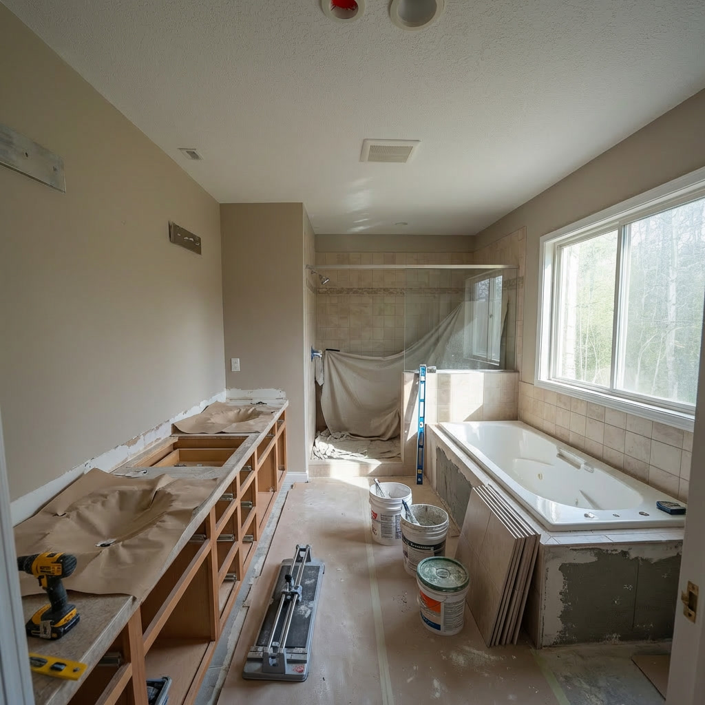 Demolition of old fixtures and tiles Installation of new plumbing and electrical systems Tiling of floors and walls Installation of new bathtub and shower Installation of new vanity and lighting fixtures